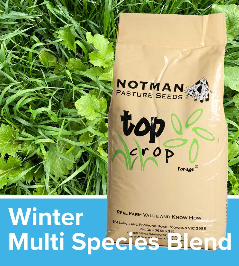 The Winter Multi Species Blend is designed to deliver rapid winter and early spring feed, while also improving soil function and setting paddocks up for the next phase of the rotation.
